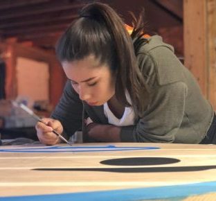Alison O. Bremner is a Tlingit artist born and raised in Southeast Alaska. Bremner is believed to be the first Tlingit woman to carve and raise a totem pole. She creates the designs for The Orca Run and The Orca Half.